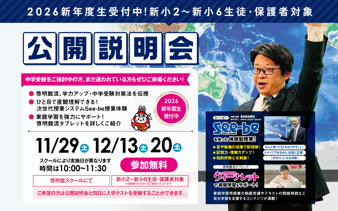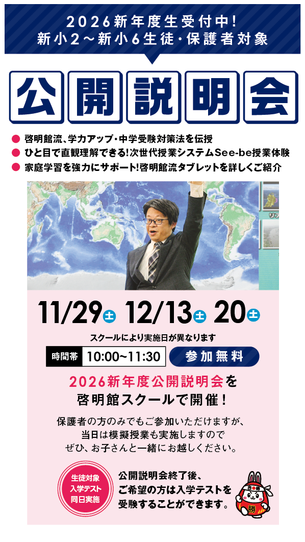 公開説明会では模擬授業を致します。