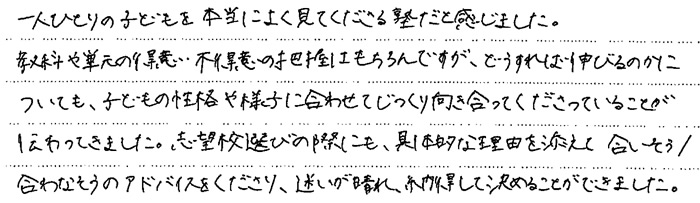 保護者からのメッセージ