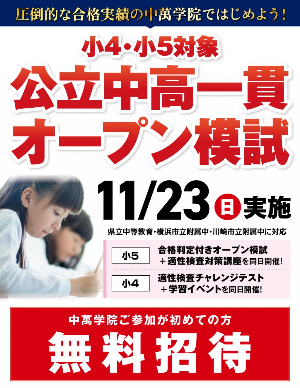 CG中萬学院によるオープン模試&対策講座を開催します。ぜひ適性検査型問題にチャレンジして、現状の学力測定と志望校合格に向けての学習計画にお役立てください。
