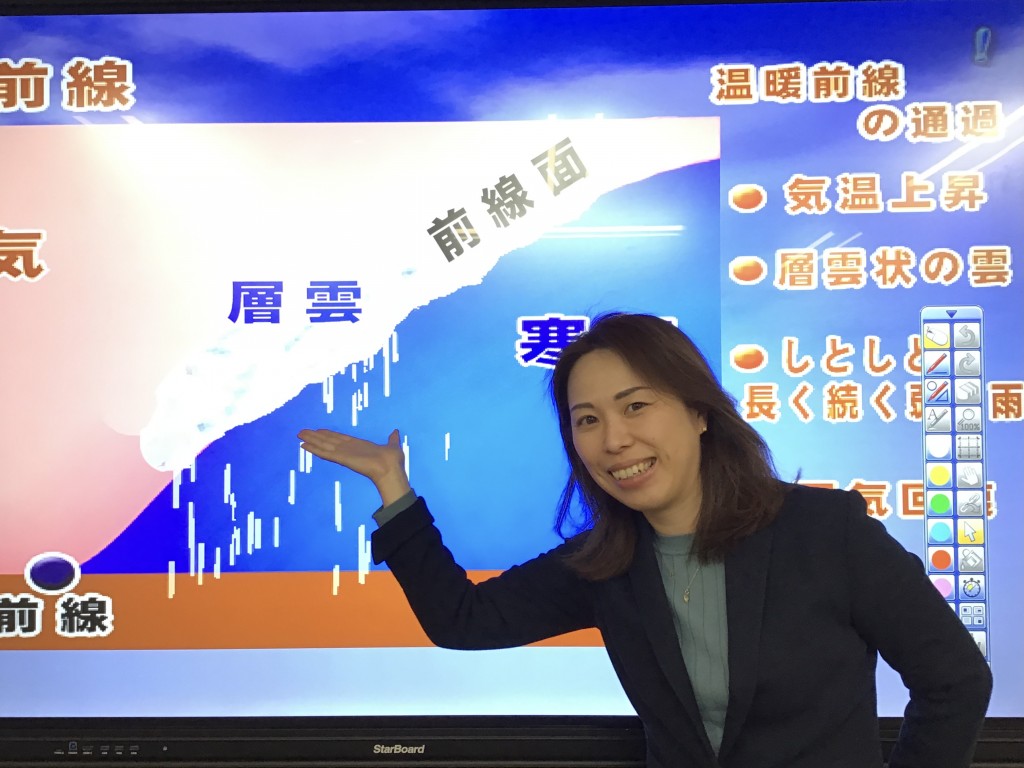 啓明館の授業は、ホワイトボードが大画面スクリーンとなり、See-beコンテンツ(マルチメディア教材)が投影されて進められます。